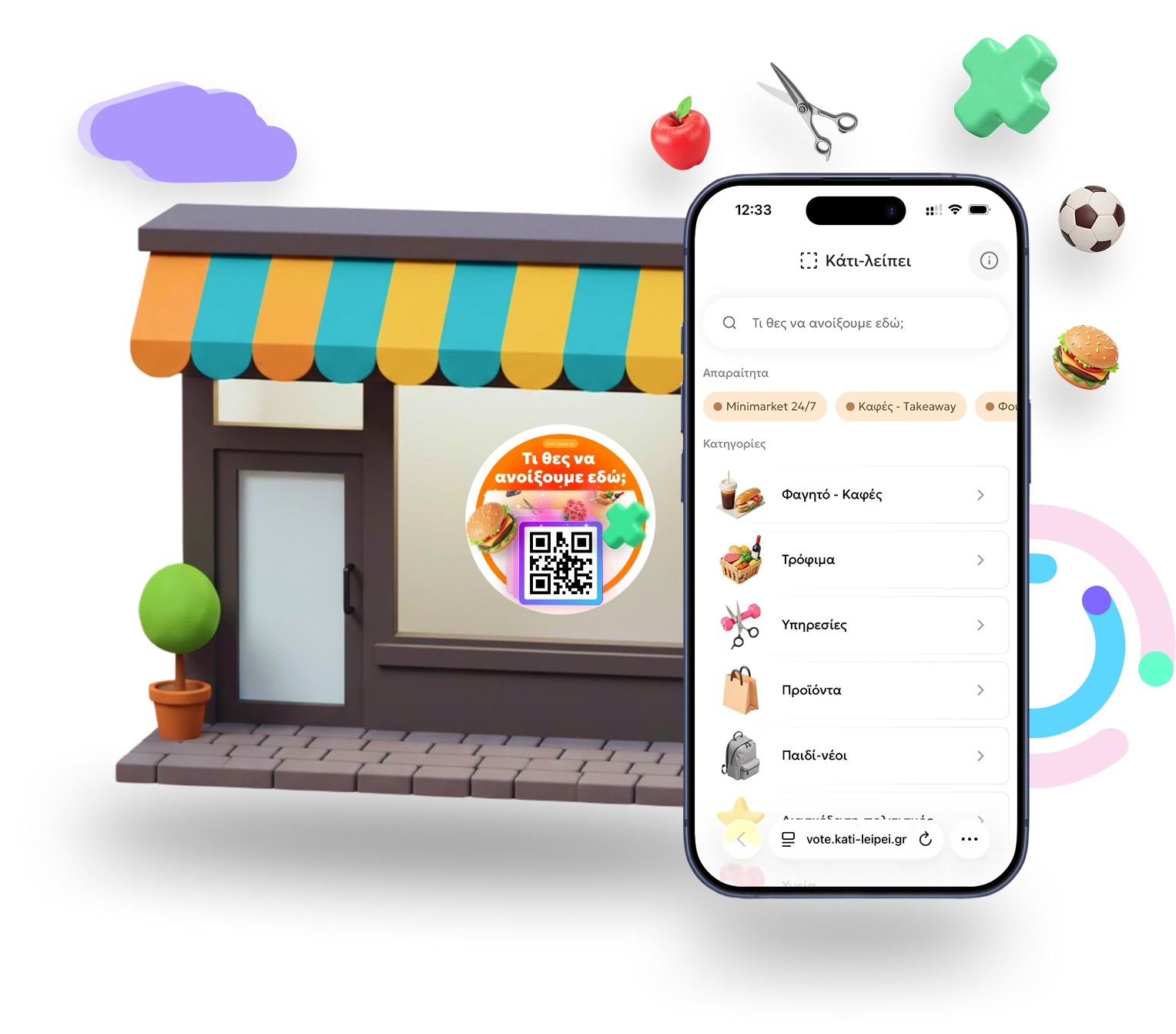 Είναι μια γέφυρα επικοινωνίας ανάμεσα σε εσένα και τα άδεια καταστήματα της γειτονιάς σου. Με ένα απλό σκανάρισμα, μας λές τι λείπει από τη γωνιά σου και εμείς βοηθάμε να έρθει η σωστή επιχείρηση εκεί!